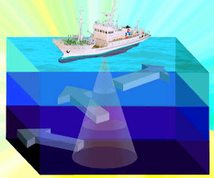 ADCPは船底から音波を発して潮流を測定する機械です。潮流の向きや強さは水深によって異なっています。