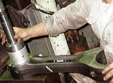 ハンマーでバルブをたたき、バルブシートをはめ込みます。