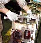 部品の摩耗状況やクラックの有無を調べるため、エンジンも分解します。