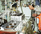 停泊用に50PS発電機を1台備えています。これは小型のため、クランク軸まで取り出してチェックすることもあります。