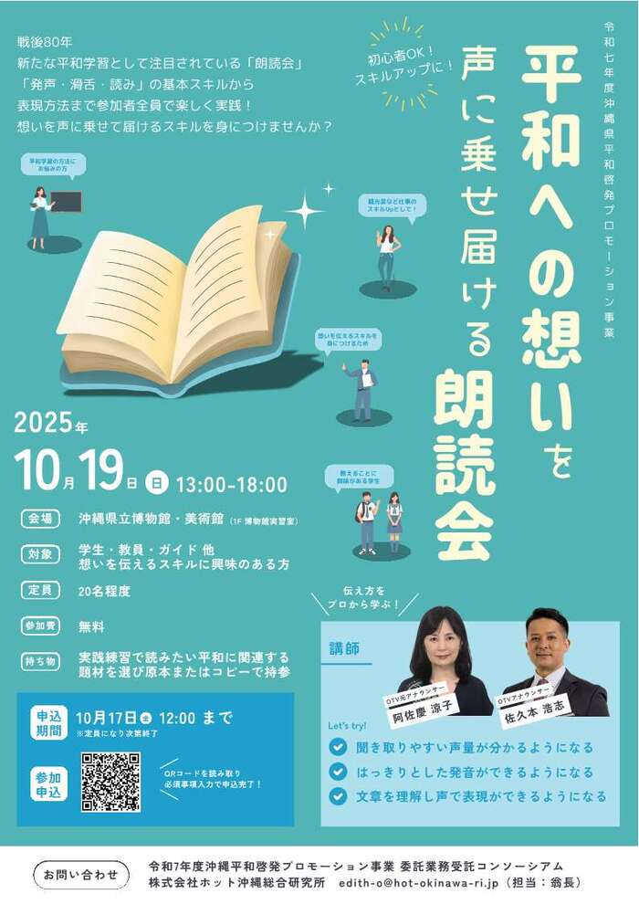 アナウンサーを講師に迎え、新たな平和学習の形である「朗読会」の方法を学び実践練習を行います。