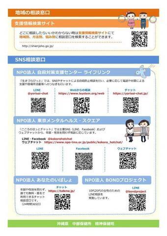 ※リーフレットにある相談窓口については下記厚生労働省ホームページ内(『電話相談』『SNS相談』『その他の相談先』など)からもアクセスできます。
