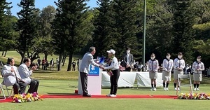 令和5年3月5日(日曜日)に、玉城知事は、琉球ゴルフ倶楽部で行われた第36回ダイキンオーキッドレディスゴルフトーナメント表彰式に出席しました。