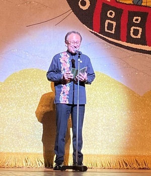 令和4年12月3日(土曜日)に、玉城知事は、コンベンションセンターで行われた「金井喜久子物語」 朗読と音楽の調べに出席し、舞台を鑑賞しました。