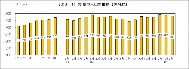 - 労働力人口は781千人と、前年同月(773千人)に比べ8千人の増加となった。