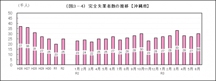 - 完全失業者数は30千人と、前年同月(27千人)に比べ3千人増加し、15か月連続の増加となった。