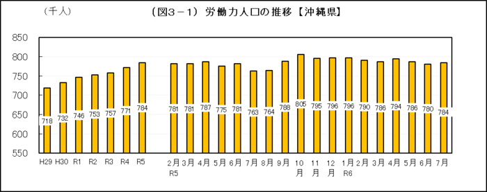 - 労働力人口は784千人と、前年同月(763千人)に比べ21千人の増加となった。
