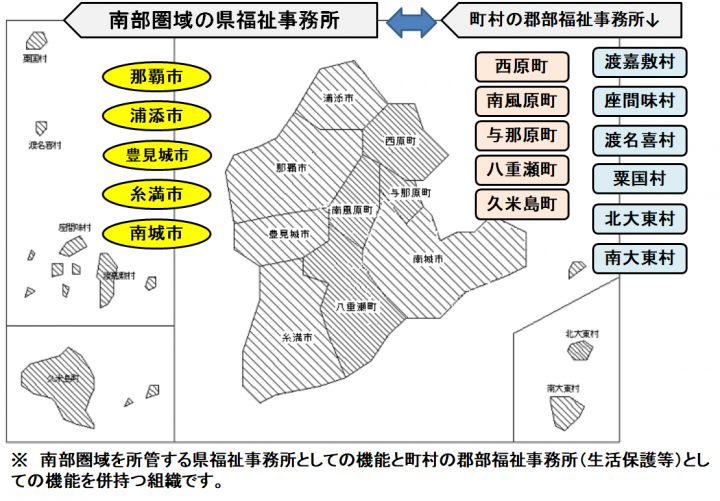 南部福祉事務所の管轄(5市5町6村) ページ番号1007127 更新日 2024年1月11日 印刷大きな文字で印刷 このページに関するお問い合わせ 沖縄県 生活福祉部 南部福祉事務所 〒901-1104 沖縄県島尻郡南風原町宮平212 電話:098-889-6370 ファクス:098-889-6366 お問い合わせは専用フォームをご利用ください。