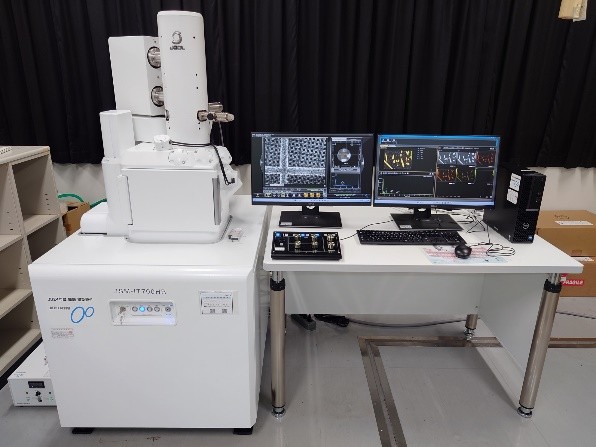 電子線を試料表面に走査し、電子、電磁波を検出して画像化する装置です。EDXを搭載しており、観察と同時に試料表面の分析も行えます。