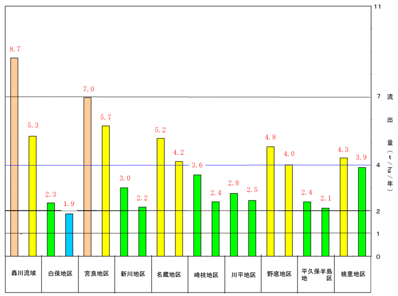 その結果、基準年から21%の削減となる3.7t/ha/年を目標流出量としました。