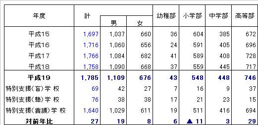 (4)児童生徒数は1,785人で、前年度から27人増加している。